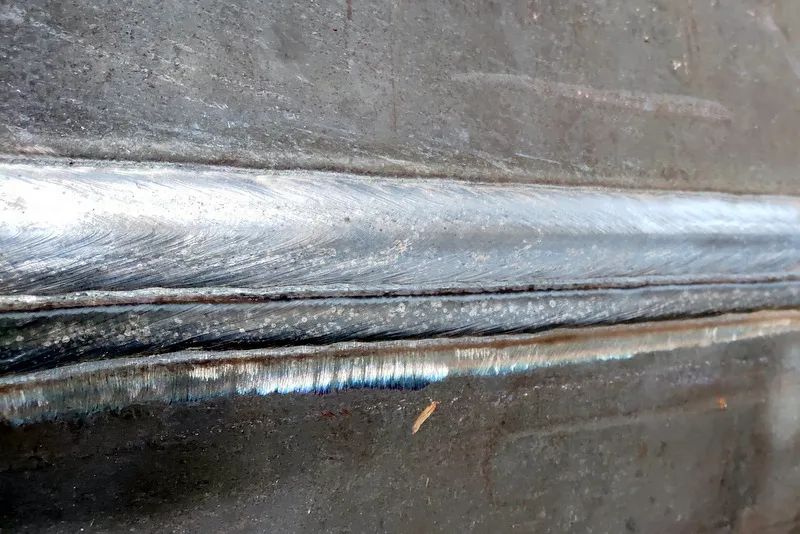 面對重重挑戰(zhàn),生性不服輸的嚴建俊與難題拗上了勁。每一次試驗后,他都做出深刻總結,在失敗原因與解決辦法中反復思考,利用大量休息時間,查閱了相關學術論文技術資料,但“破局”似乎總是遙遙無期。偶然間與同學的一通電話,給這件事帶來了轉機。電話中,與從事海工產品制造并了解環(huán)焊縫焊接的同學的一番交流,為他理清了思緒,找到了針對性的措施。在優(yōu)化了焊接參數的相關匹配后,在攻關上歷盡劫波的嚴建俊終于成功了,雙絲機頭的結構排列、焊劑和焊縫金屬濺出問題、根部焊道清渣困難都得到徹底解決。